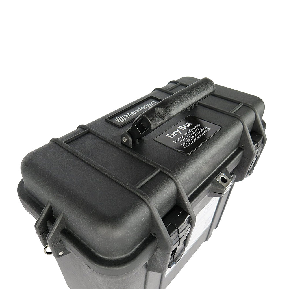 La Markforged Drybox è un contenitore dedicato alla conservazione e gestione del filamento, pensato per ridurre l’esposizione del materiale all’umidità ambientale durante lo stoccaggio e l’utilizzo. In contesti produttivi, una corretta protezione del filamento aiuta a mantenere costanti le prestazioni e a limitare difetti tipicamente associati a materiali esposti a condizioni non ottimali.